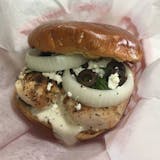 With feta cheese, black olive, fresh basil, onion & creamy garlic.